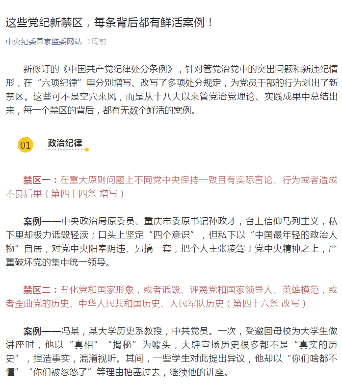 為強(qiáng)化對《中國共產(chǎn)黨紀(jì)律處分條例》的學(xué)習(xí),學(xué)先一步,學(xué)深一層,學(xué)用結(jié)合,集團(tuán)紀(jì)委引用中央紀(jì)委國家監(jiān)委網(wǎng)站的內(nèi)容,帶領(lǐng)大家從“典型案例”中深刻領(lǐng)會(huì)《條例》修訂的重大意義,積極用《條例》武裝頭腦、筑牢防線,進(jìn)一步增強(qiáng)紀(jì)律意識(shí)、規(guī)矩意識(shí)。下面,就讓我們通過案例看一看這些不能觸碰的禁區(qū)!